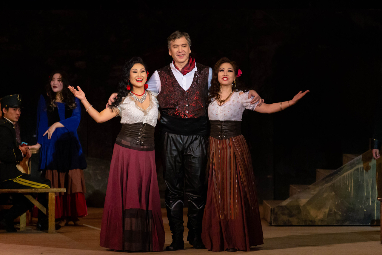 Бурятские зрители впервые услышали «Кармен» в 1949 году в постановке Гомбо Цыдынжапова. История гениальной оперы, не раз ставившейся в нашем театре, знает немало замечательных имён исполнителей заглавных партий. Одно из них – народный артист СССР Дугаржап Дашиев, блиставший в партии Хозе вместе с заслуженной артисткой России, лауреатом Всесоюзного конкурса имени М. Глинки Ольгой Аюровой в партии Кармен не один сезон.